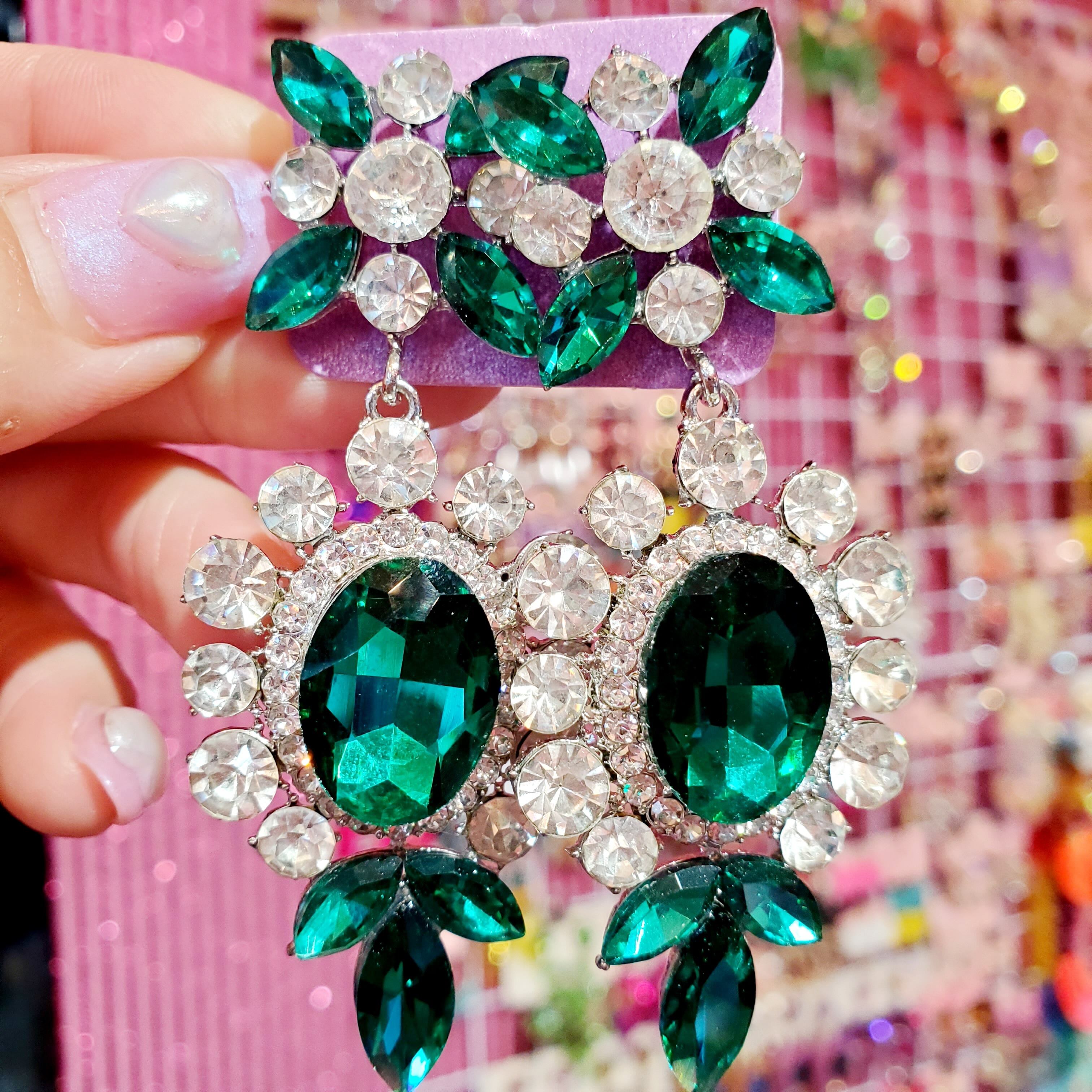 大ぶりゴージャスな綺麗なグリーンのピアス(๑°꒵°๑)・*♡